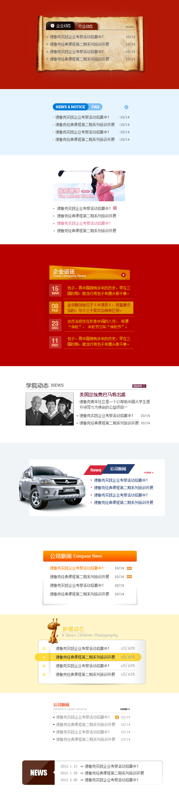 無論是做哪種風(fēng)格的網(wǎng)頁(yè)設(shè)計(jì),也無論設(shè)計(jì)中的創(chuàng)意有多么好,最終還是要踏踏實(shí)實(shí)的落腳到頁(yè)面中每一部分的元素的實(shí)現(xiàn)上來,導(dǎo)航做成什么樣?新聞動(dòng)態(tài)做成什么樣?還有產(chǎn)品列表又該做成什么樣?解決了這些問題,才標(biāo)志著你的設(shè)計(jì)得以最終實(shí)現(xiàn)。而如何確定頁(yè)面中這些元素的樣式,不僅需要?jiǎng)?chuàng)意,還需要考慮到該元素與頁(yè)面上其他元素的關(guān)系,是否與其它元素的樣式有所差別,從而保持視覺上的趣味性?是否有足夠的視覺比重從而保證視覺上的豐滿?是否在風(fēng)格上和整體頁(yè)面保持一致,從而不讓整體風(fēng)格顯得凌亂?在我看來,這些問題的答案除了發(fā)揮自己的審美和想象之外,還有一種方法:看看別人在設(shè)計(jì)中是怎么做的,并且動(dòng)手練習(xí)一下。