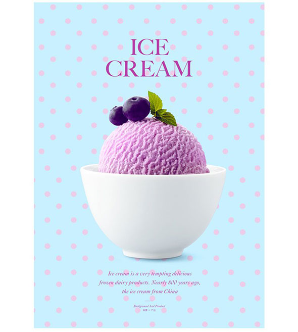 模擬一個(gè)冰淇淋的畫面,分別以純顏色背景、場景背景、漸變背景、圖形背景進(jìn)行設(shè)計(jì)。