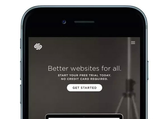 Squarespace:Squarespace的手機(jī)版加載界面設(shè)計(jì)美觀,有所有必須的主要元素,包括主標(biāo)題,副標(biāo)題和動(dòng)作按鈕。